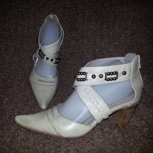 MIZ MOOZ-Strawberry-Black Leather-Ankle Wrap Heels-Sz 8-Excellent