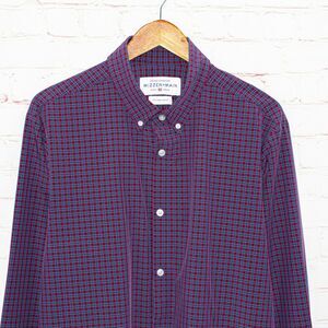 MIZZEN + MAIN Trim Fit Button up Shirt Blue Red Check Men's Size 2XL