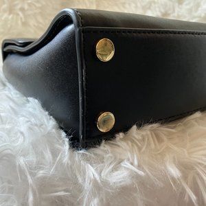 Michael Kors black top handle bag, comes with should strap and purchase tag. I bought this from Michael Kors online. Such a gorgeous classic bag! Has metal feet on bottom and squeeze lock in front. Slip pocket on back. Very Good condition.