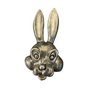 MJ Bunny Pendant Brooch Silver Tone Aged Patina 2.25"