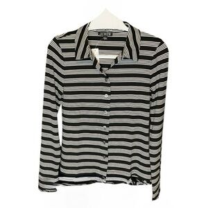 MJ Crew Long Sleeve Button Up Top In Striped Refined Rib S