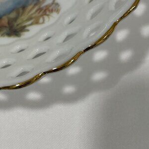 * 5" trinket dish, porcelain with filagreed porcelain border & gold rim