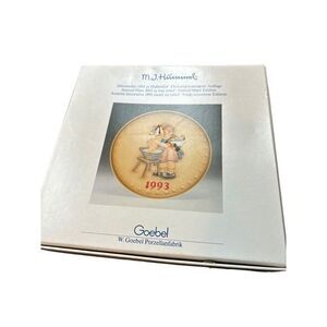 This collectible M.J. Hummel 1993 annual plate by Goebel showcases intricate bas-relief work. A timeless piece for enthusiasts and collectors alike.