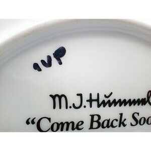Cherish the MJ Hummel Little Companions Come Back Soon Plate from Danbury Mint. This 8" limited edition collector's piece features delightful Hummel artwork and is a wonderful addition to any collection.