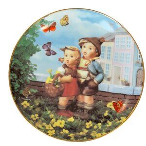 This M.J. Hummel collector plate from the Little Companions collection features a charming illustration of children. It's part of a limited edition series, adding value to any collection.