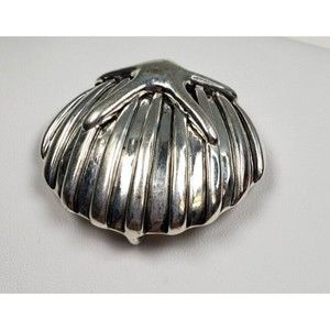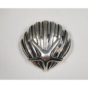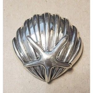 MJ Signed Vintage Starfish Shell Brooch Pendant Pin Silver Domed Beach Sea Clam