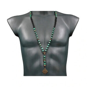 MJA Handmade Art Onyx Turquoise African Unisex Necklace In Carved Box