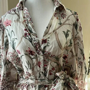 [M]Johanne Ortiz xH&M Designer White Orchid Linen Button Down L/S Shirt Dress