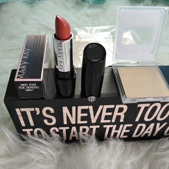 This is a sweet MK bundle for a fair skinned person.awesome lipstick is a Sunset peach and the pressed face powder is an ivory 1
