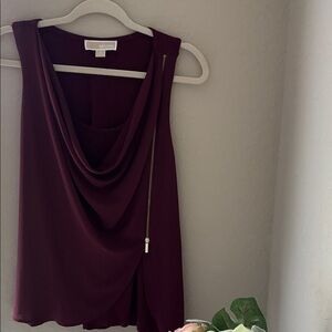 MK Elegant burgundy drape top featuring a stylish zipper accent. Ideal for versatile wear.