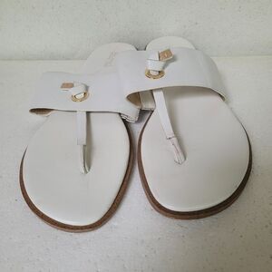 These sandals boast a minimalist design with wide straps and gold-toned buckles, offering a touch of elegance. The flat sole provides comfort, making them perfect for casual summer days.