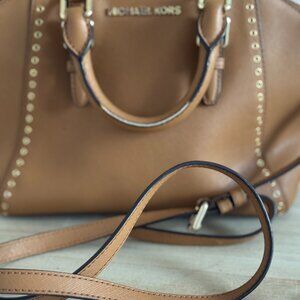 Classic MK design. A beautiful everyday leather Satchel w/detailed gold-tone grommets for subtle shine. Good condition w/light, visible wear (see photos). Great neutral tone for all seasons.