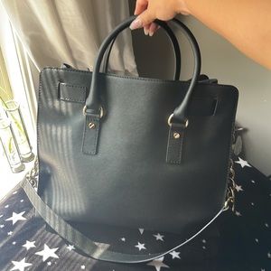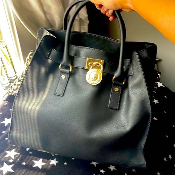 Michael Kors Hamilton Bag, black; gently used. Purchased with no key (keychain) light scratches on lock is the only damage on bag :)