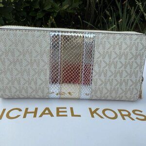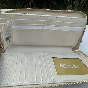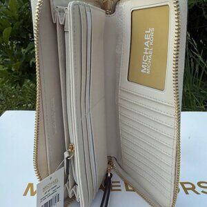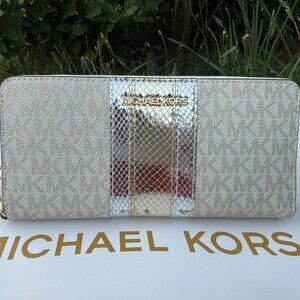 MK Jet set Large continental Pale Gold Mk logo leather wallet PVC