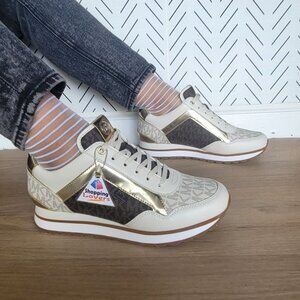 ❤️MK MADDY Womens Trainer Sneaker 6.5 Monogram Gold Brown Casual Lifestyle Shoes