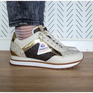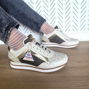 ❤️MK MADDY Womens Trainer Sneaker 7.5 Monogram Gold Brown Casual Lifestyle Shoes
