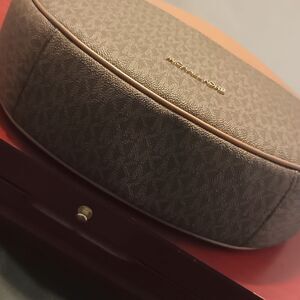 👑👜🔥MK MICHAEL KORS DOVER LG HALF-MOON HOBO PEBBLED LEATHER SHOULDER BAG POPPY BROWN‼️