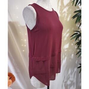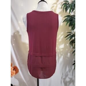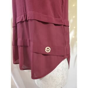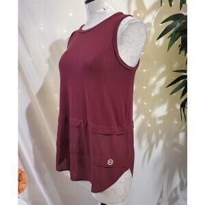 MK MICHAEL Michael Kors Tiered Gold Logo Sleeveless Tank Top Size S Burgundy Red