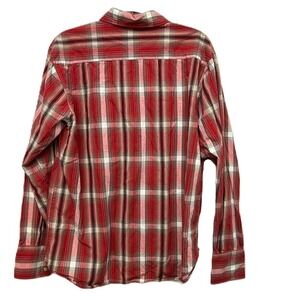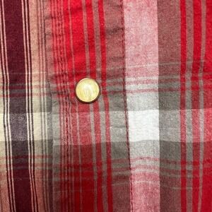 Red plaid in gently used condition. All snaps are present and in working order. No wear visible.