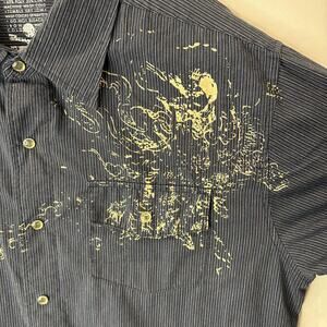 Machine Size L Pearl Snap Shirt Y2K Vintage Graphic Grunge Rock Western Stripe