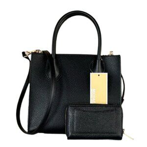 MK Mercer Medium Satchel Shoulder Crossbody Bag Plus Wallet Set Black