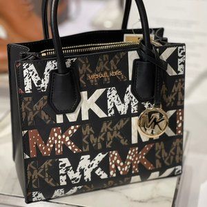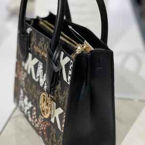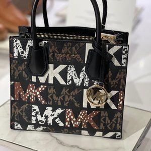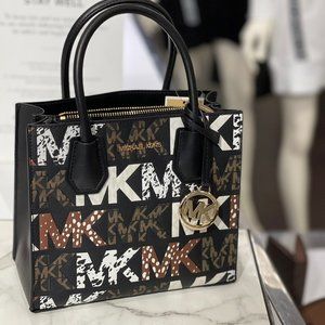 MK Mercer Small Satchel Messenger Logo Black Multi