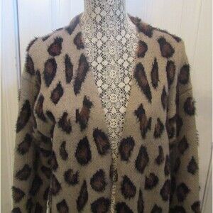 MK Metric Knits Cardigan Leopard Animal Print Fuzzy Ultra Soft Sweater Size L