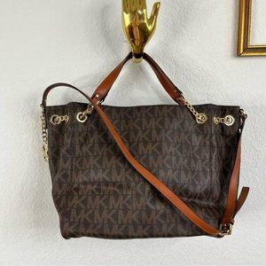 MK Michael Kors Monogram Jet Set XL Chain Dual Strap Bag