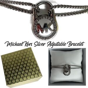 MK Michael Kors Padlock Lock Silver Pave Crystal Bracelet NWT in Box