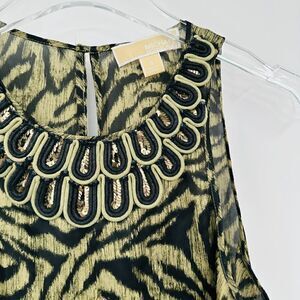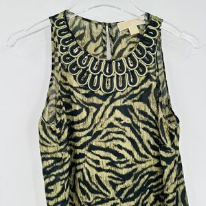 MK Michael Kors Size Small Green & Black Sleeveless Animal Print Blouse Top