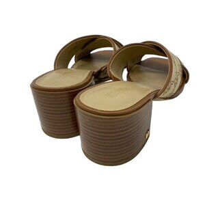 MK Michael Kors Sz 9 Abbott Open Toe Mule Beige/Ebony Logo Block Heel NWOB