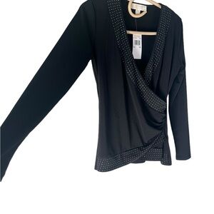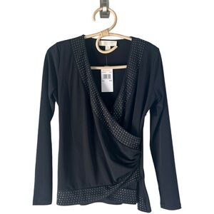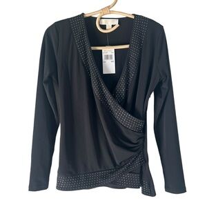 NEW Michael Michael Kors Petite Rhinestone Border Long-Sleeve Jersey Top