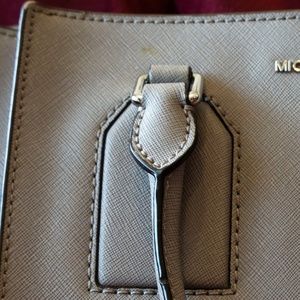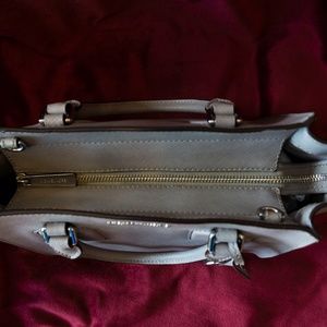 MK Selby Medium Leather Satchel Pearl Grey