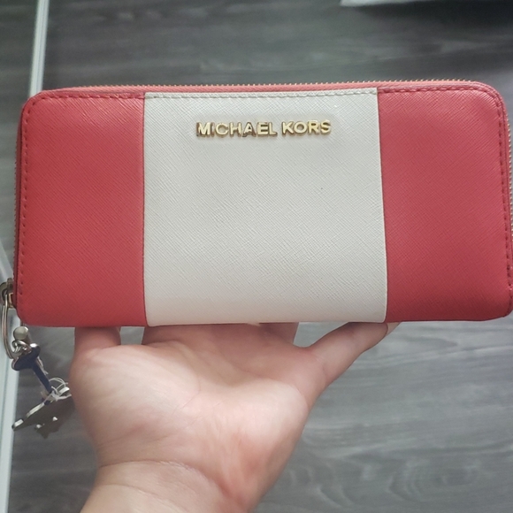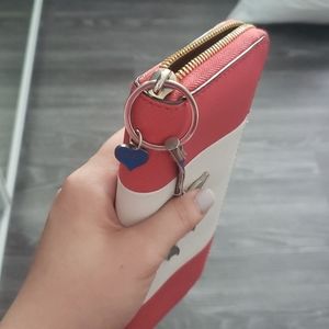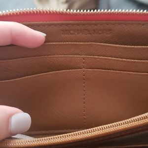 Lightly USED, only negative is the zipper that broke so I used a key chain as replacement. You can always buy a cute little keychain as replacement! Leather and stitching in great condition. Has a lot of room and can fit your phone too!