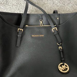 Michael Kors Tote bag. Black with Gold accents. Little bit of visible wear on the back. Leather material.