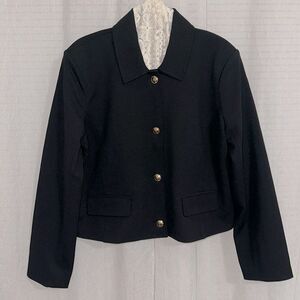 MK XL Black Gold Tone Buttons Collared Crop Professional Blazer Suit Jacket