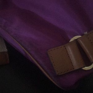 Lovely vibrant color. Gold hardware. Used in good condition. Has some rubbing on back as shown in pictures . Some fraying, overall in great condition. Please see pictures before purchase. Fraying is noticeable and some blue transfer from wear is noticeable.