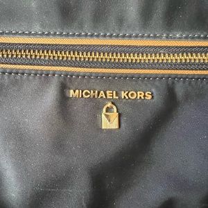 Nylon Michael Kors, backpack. Camel color accent, large interior. Large front zippered pocket.