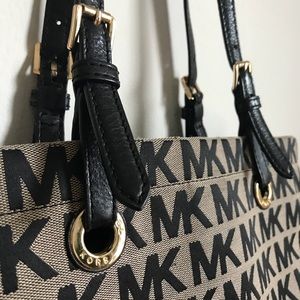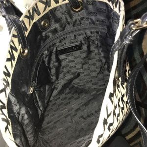 Brown and black tote! I used it for my laptop a few times but other than that I forgot I had it and decided to sell it! Nothing wrong with it I just don’t use it anymore!