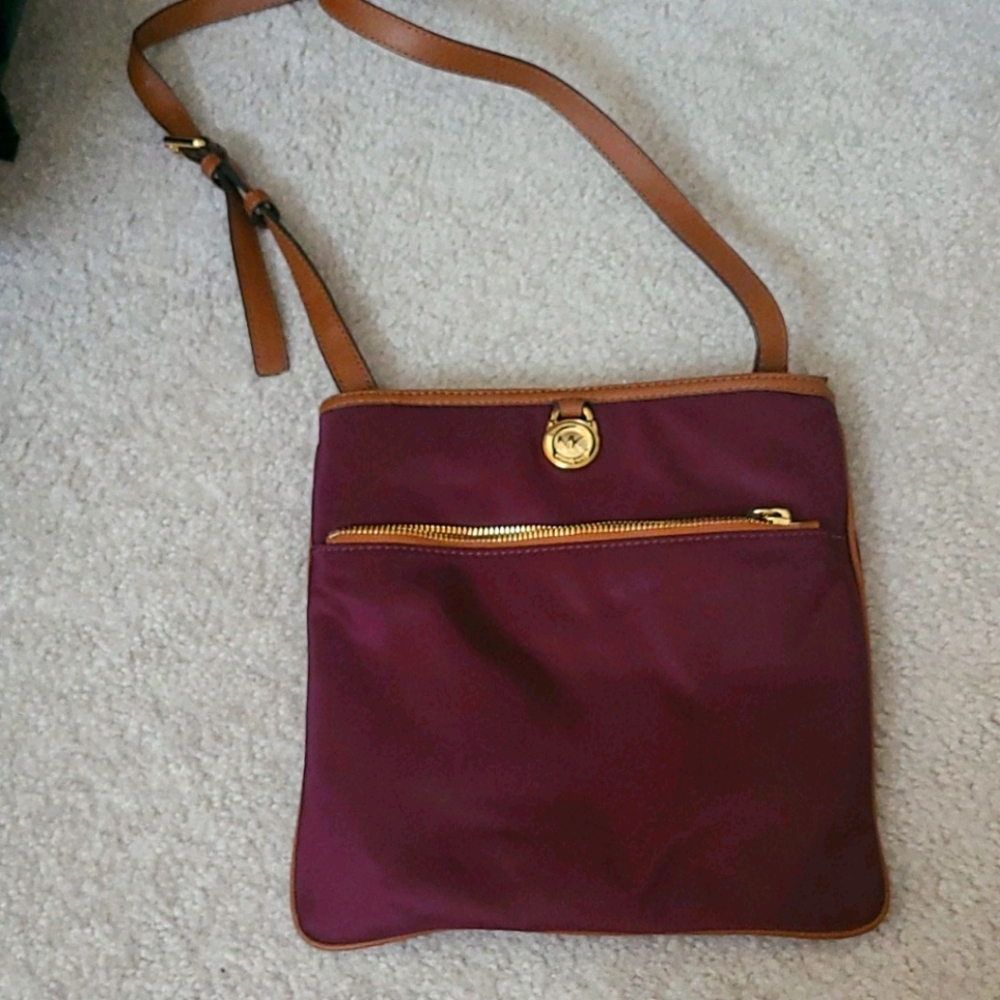 Purple Michael Kors crossbody. Plenty of storage space. Large zip pocket on front. Button pocket on the back. Zip close. Multiple pockets on the inside. Adjustable strap. Never used.