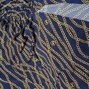 NWT MICHAEL KORS Logo Chain Print Ruched side Split Pullover Midi Skirt XL. stretch material.