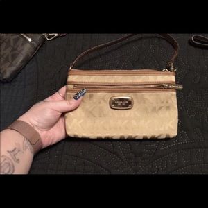 Brand new authentic from Michael kors never used no scratches on hardware no damage at all. Tan and brown monogram canvas. fits my iPhone 7 plus with more room.