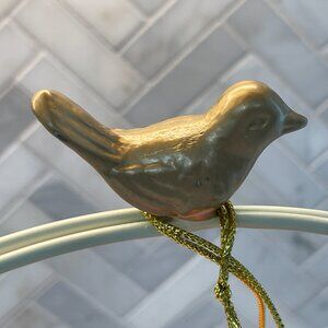 Notes: A stunning MKC piece with striped pot, sculpted songbird topper, and daisy bouquet encircled in a double ring of joy. Perfect for centerpieces, seasonal shelves, or gifting with flair.