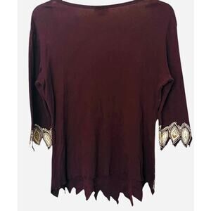 MKM DESIGNS LONG SLV SCOOP NECK PULL-OVER BLOUSE, WOMENS, 1X, BROWN W/GOLD DECOR
