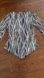 Bold and timeless, this MKM Designs blouse features a modern abstract wave print in black, white, and sage green tones. The flared bell sleeves and pointed hem give it that unmistakable late-90s/early-2000s statement look. Made in the USA from a stretchy poly-spandex blend that hugs the body beautifully.