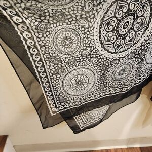 This Mango camisole top features a striking black and white paisley print with an asymmetrical handkerchief hemline. The flowing silhouette and spaghetti straps create a chic and modern look, perfect for adding a touch of elegance to any outfit.