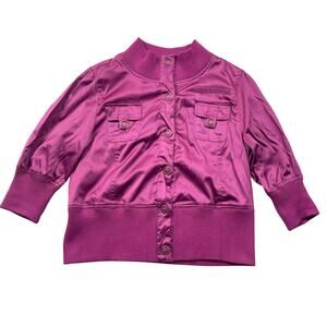 MKM Designs Jacket XL Fuchsia Pink Satin Cropped Ribbed Trim Vintage Y2K