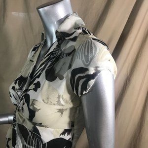 Vintage M.K.M Designs Women's Small Y2K Semi Sheer Crop Belly Relieving Blouse V Neck Top Wrap Style Front, Side Zip.