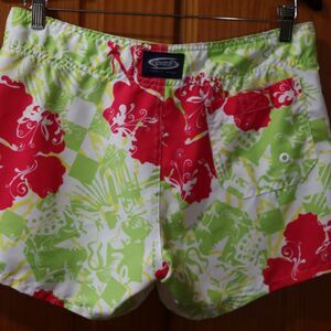 MKS Men’s Tropical Vacation Beach Swim Trunks Small Palm Print 100% Polyester
