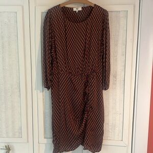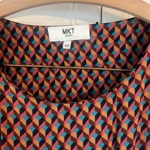 MKT Studio Rakiala Satin Print Retro Dress Caramel size 40(M)